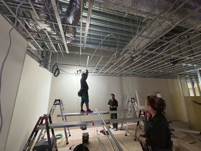 壁や天井の骨組みが見えてきて、完成後の空間をイメージできるようになってきました。
